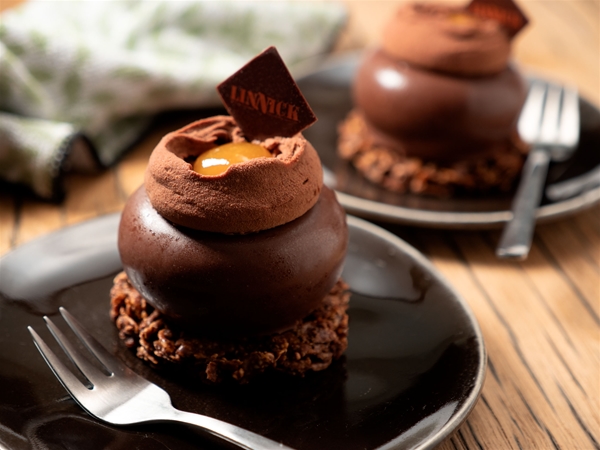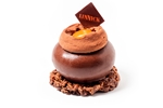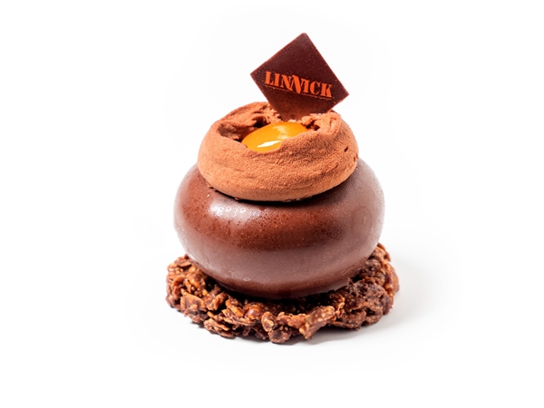 The vegan is a delicious one-person cake that is 100% vegan. It is made with a filling of chocolate mousse with yuzu cremeux, soft chocolate cake with soy milk and a crunch of cereal bottom.